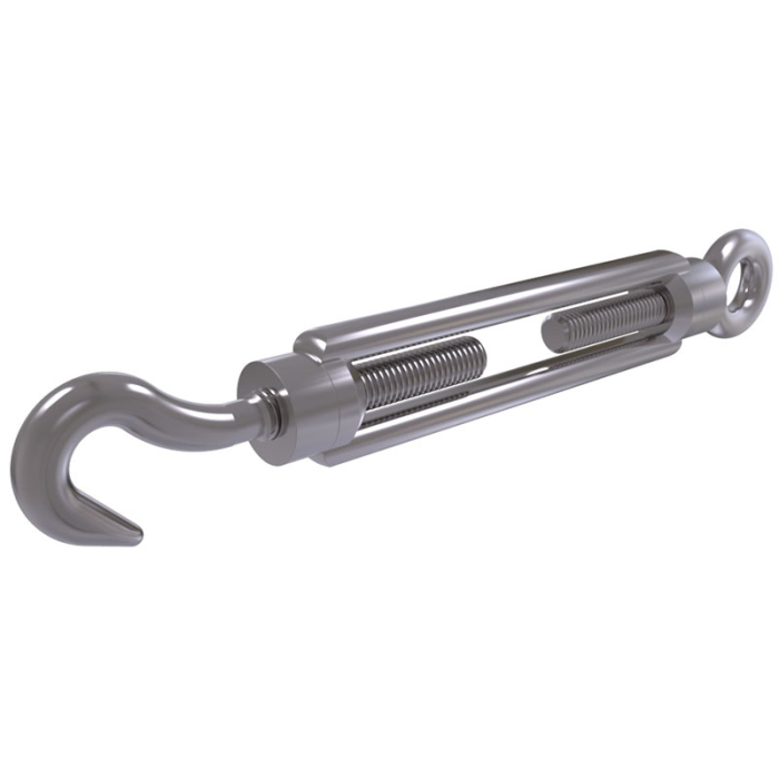 VIJAK natezni oko-kuka M10 mm - zatezni vijak služi za spajanje i podešavanje dužine i napetosti užeta ili šipke. Za tu svrhu ima na jednom kraju desni, a na drugom lijevi navoj. Krajevi kuka i oko, standard DIN1480.