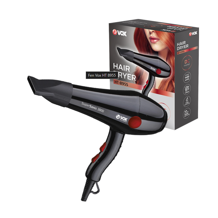 VOX HT 8955 fen za kosu omogućava efikasno sušenje i stilizovanje uz 3 temperaturna nivoa i 2 brzine rada. Kompaktan dizajn olakšava korištenje i odlaganje, dok zaštita od pregrijavanja osigurava sigurnu upotrebu. Opremljen je alkom za kačenje i jednostavnim podešavanjem temperature i brzine, što ga čini praktičnim za svakodnevnu njegu kose.