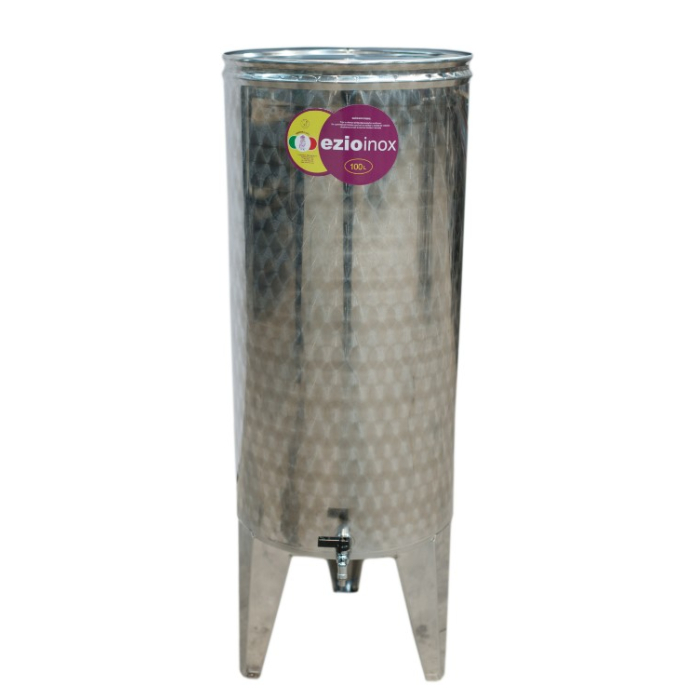 EZIOINOX bačva za vino 100L izrađena od nehrđajućeg čelika debljine 0,6mm,isporučuje se u kompletu sa česmom 1/2" sa dva poklopca, unutrašnji (plutajući) i vanjski poklopac.