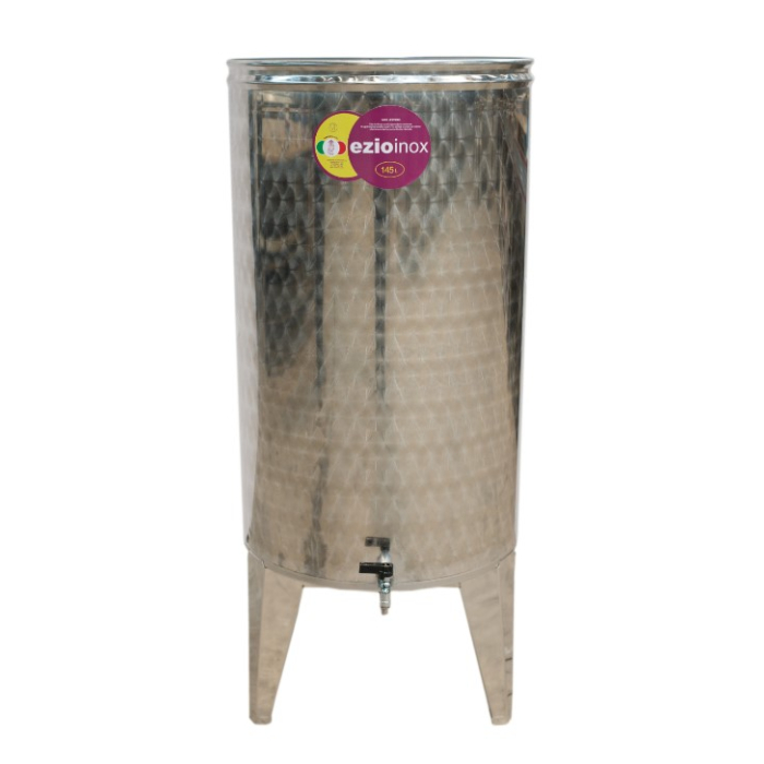 EZIOINOX bačva za vino 145L izrađena od nehrđajućeg čelika debljine 0,6mm,isporučuje se u kompletu sa česmom 1/2" i ispusnim ventilom 1/2 "sa dva poklopca, unutrašnji (plutajući) i vanjski poklopac.
