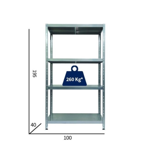 GRIMA montažna pocinčana polica , komplet od četiri police.Pocinkovana bojaUkupan kapacitet: 1.040 kgDimenzije: 100 x 40 x 195 h (u cm)