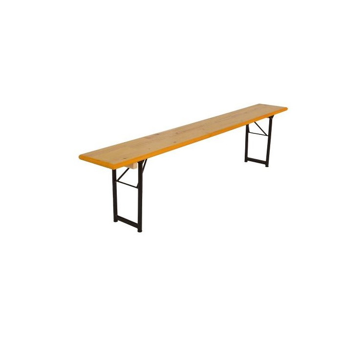 KLUPA slavska 250X2000MM sa okruglim cijevima izrađena od hladnovalajnih čeličnih cijevi lakiranih bojom u prahu i drvene jelove ploče debljine 28mm obojene UV lakom. Noge su sklopive i imaju pvc čepove radi zaštite podnih površina.