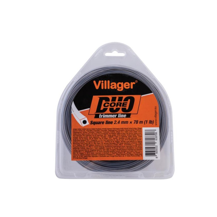 VILLAGER silk za trimer 2,4 mm x 15 m Duo Core četvrtasti je izuzetno izdržljiv alat dizajniran za efikasno šišanje trave, korova i grmlja. Sa četvrtastim oblikom i Duo Core tehnologijom, koja sadrži dva unutrašnja jezgra, ovaj silk pruža dodatnu čvrstoću i otpornost na habanje, čime omogućava duži vijek trajanja. Debljina od 2,4 mm omogućava precizno i brzo šišanje, dok četvrtasti oblik žice poboljšava efikasnost prilikom rezanja gustog korova.