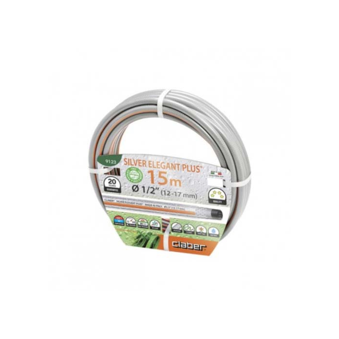 CLABER crijevo Elegant Plus 1/2" 15m 9123 je izuzetno lagano pleteno crijevo s kojim se lako rukuje, anti-kink, fleksibilno, otporno na alge i UV-otporno. Ne sadrži teške metale.