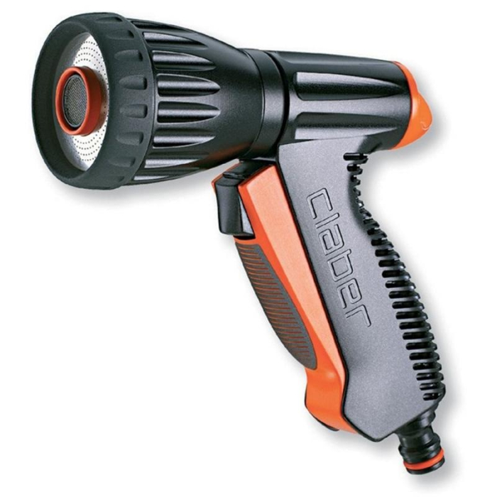 CLABER pištolj za crijevo Balcony 9565 ima novi anatomski gumeni držač i prikladan prednji okidač za uključivanje i isključivanje. Dugme straga podešava snagu vodenog mlaza.