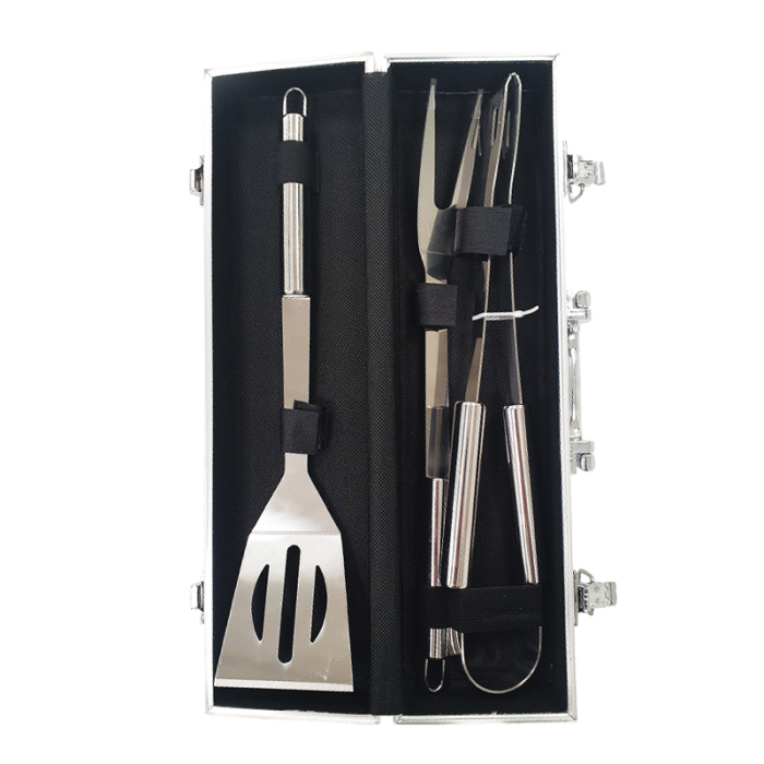 PRIBOR za roštilj BBQ-01 je trodijelni set pribora za roštilj koji se sastoji od viljuške, hvataljke i lopatice. Set je idealan za sve majstore roštilja, zahvaljujući kvalitetnoj izradi od nehrđajućeg čelika. Mekane, neklizeće drške pribora omogućuju ugodno, jednostavno i sigurno roštiljanje.