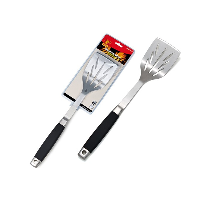 ŠPAHTLA metalna za roštilj Boomex je neizostavan alat za lako okretanje i posluživanje hrane na roštilju. Izrađena od čvrstog, temperaturno otpornog metala, osigurava dugotrajnost i pouzdanost pri korištenju. Ergonomična drška omogućava sigurno i udobno rukovanje, dok široka površina špahtle olakšava podizanje većih komada hrane.Dužina 42cm.