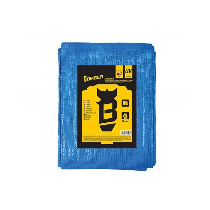 BOMBER cerada 5 x 8 80g, pogodna za prekrivanja i zaštitu automobila, čamaca, objekata i stvari pružajući efikasnu zaštitu od uticaja kiše, sunca, prašine.- Širina: 5 m- Dužina: 8 m- Površina: 40 m2- Težina: 80 g/m2