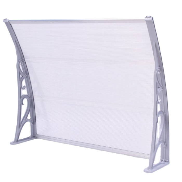 NADSTREŠNICA providna sa sivim nosačima 100x100cm je elegantno i funkcionalno rješenje za zaštitu ulaznih vrata, prozora ili balkona. Ova nadstrešnica je izrađena od visokokvalitetnog polikarbonata koji je otporan na UV zrake i vremenske uslove, pružajući dugotrajnu zaštitu od sunca, kiše i snijega.