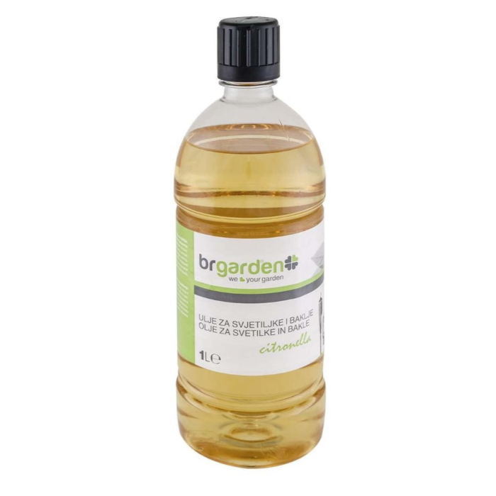 ULJE za baklje i fenjere 1L protiv komaraca, biljno ulje za svjetiljke za vanjsku upotrebu. Oslobađa ugodan miris. Pogodan za vrtove, terase i balkone. Napunite spremnik baklje, pričekajte da fitilj upije ulje i zatim zapalite. Dostupno u bocama od 1 litre. Miris citronele.