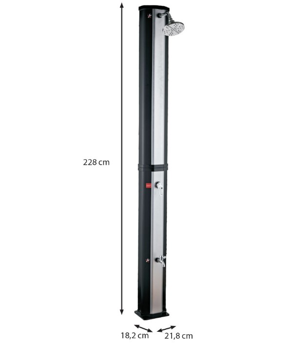 STRONGPRO tuš solarni KR-116 60L – Savršen spoj funkcionalnosti i elegancije. Solarni tuš kapaciteta 60 litara omogućava Vam uživanje u toploj vodi bez dodatnih troškova energije. Zahvaljujući solarnom sistemu grijanja, voda se prirodno zagrijava sunčevim zracima, pružajući Vam ugodno osvježenje u dvorištu, pored bazena ili na vikendici. Moderan dizajn i kvalitetni materijali osiguravaju dugotrajnost i otpornost na vremenske uslove.Dimenzije (š x v x d) : 18,2x228x21,8cm