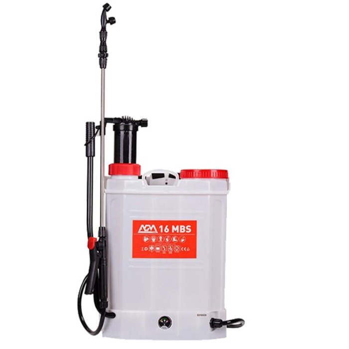 AGM ručna prskalica na baterije 2u116 MBS je akumulatorska i ručna prskalica. Ima bateriju od 8Ah koja je dovoljna za 5 sati rada, a nakon pražnjenja baterije možete nastaviti prskanje ručnim pumpanjem kao na običnim ručnim prskalicama što daje odličnu fleksibilnost.