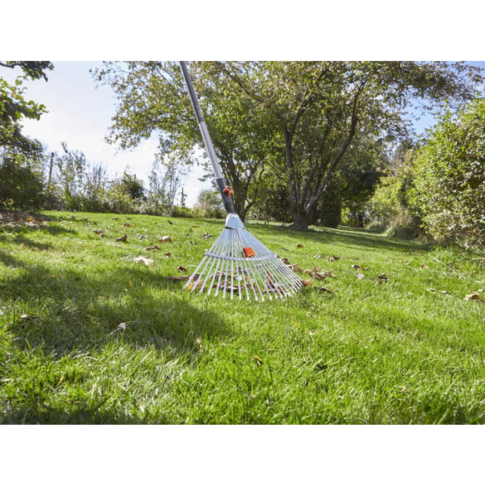 GARDENA metla prilagodljiva je odlična za skupljanje lišća i ostataka trave radne širine 30 - 50 cm, zavisno od vrste materijala koji se skuplja, te se takođe širina između zubaca prilagođava materijalu. Takođe su prilagodljive sve drške iz combysistem linije.