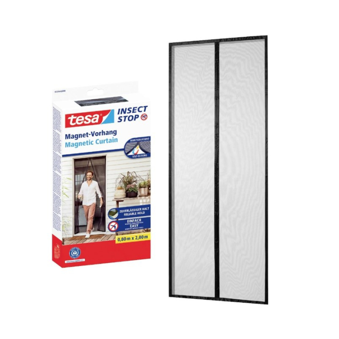 TESA mrežica protiv insekata sa magnetima 2 x 0,8 m crna pouzdano sprječava da vrata dvorišta i balkona postanu prolaz za komarce, kao i za druge insekte. Magneti ušiveni u zavjesu osiguravaju da se zavjesa na vratima lako otvara i zatvara bez napora - posebno se preporučuje ako u domaćinstvu ima djece.Dimenzije: 2 x 0,8 mBoja: CrnaMaterijal: Poliester