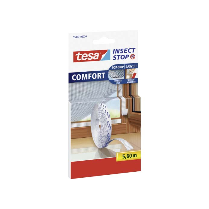 TESA traka za mrežicu protiv insekata 5,6m može se koristiti na svim aluminijskim, PVC ili drvenim okvirima. Samoljepljiva. Može se ukloniti bez traga.