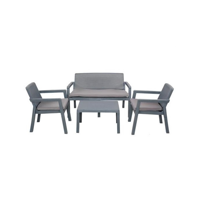 GARNITURA vrtna Bali – Uživajte u udobnosti i eleganciji sa ovim modernim baštenskim setom koji se sastoji od dvosjeda, dvije fotelje i stola. Izrađen od visokokvalitetnog materijala otpornog na vremenske uslove, ovaj set je savršen za vašu terasu, dvorište ili balkon. Ergonomski dizajn i udobni jastuci pružaju maksimalan komfor, dok neutralne boje lako uklapaju u svaki eksterijer. Dimenzija fotelje : 61.5 × 62 × 75 cmDimenzija dvoseda : 122.5 × 62 × 75 cmDimenzija stola : 69 × 49 × 42 cm