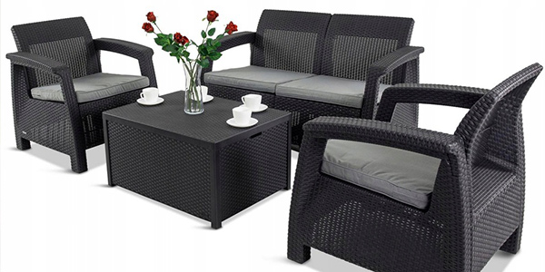 Corfu garnitura je elegantan set namještaja koji imitira ratan, sastoji se od dve fotelje, dvosjeda i stola sa prostranim prostorom za odlaganje. Proizvod je opremljen mekim jastucima u modernim bojama. Namještaj lagane ali čvrste konstrukcije lijepo se uklapa u svaki prostor u dvorištu poput bašte ili terase. Set je vrlo jednostavan za održavanje i čišćenje. Napravljen od plastike otporne na sve vremenske prilike i UV zrake.