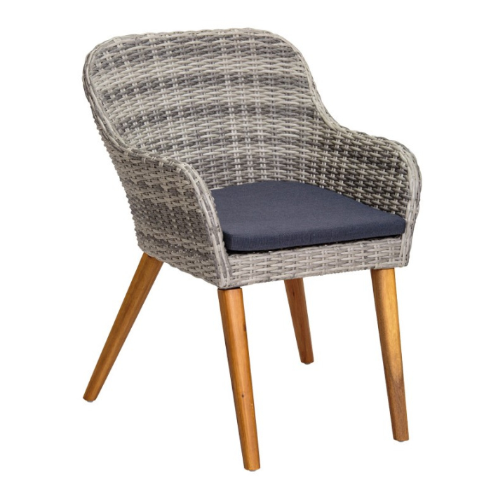 STOLICA Dixon je baštenska stolica napravljena od PE ratana visokog kvaliteta. Konstrukcija je ojačana metalnom konstrukcijom, koja stolicu čini dugotrajnom i izdržljivom. Jastuk je tamno sive boje, deblijne 3cm, napravljen od poliestera, sa dva sloja unutar jastuka, za maksimalnu udobnost stolice.