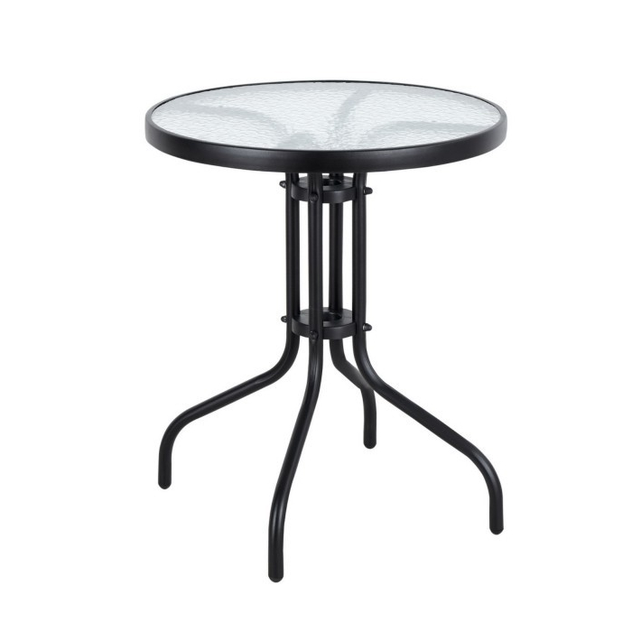 DECOSTRONG sto Bistro metal/staklo je praktičan baštenski sto sa čeličnim ramom i pločom od kaljenog stakla sa efektom vodenih talasa. Dimenzije stola su O60 x 70 cm, a konstrukcija je izrađena od čeličnih cijevi debljine 24x0,8 mm. Idealan je za male terase, balkone ili dvorišta, otporan na vremenske uslove i jednostavan za sklapanje uz priloženo uputstvo.