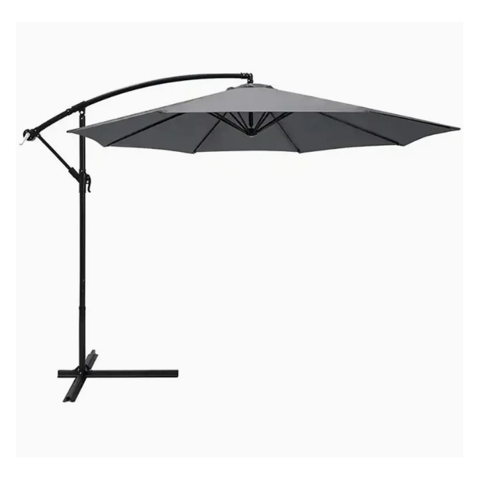 DECOSTRONG suncobran viseći na konzoli sivi pruža pouzdanu zaštitu od sunca i elegantan izgled za terase i vrtove. Prečnika 300 cm i visine 230 cm, sadrži 6 čeličnih rebara i čelični stub sa sivim zaštitnim premazom. Otvara se pomoću ručice (crank system), a platno je izrađeno od izdržljivog poliestera 180 g/m2. Uključuje ukrštenu bazu, dok tegovi nisu dio paketa. Idealan je za stvaranje prijatnog hlada na otvorenom.