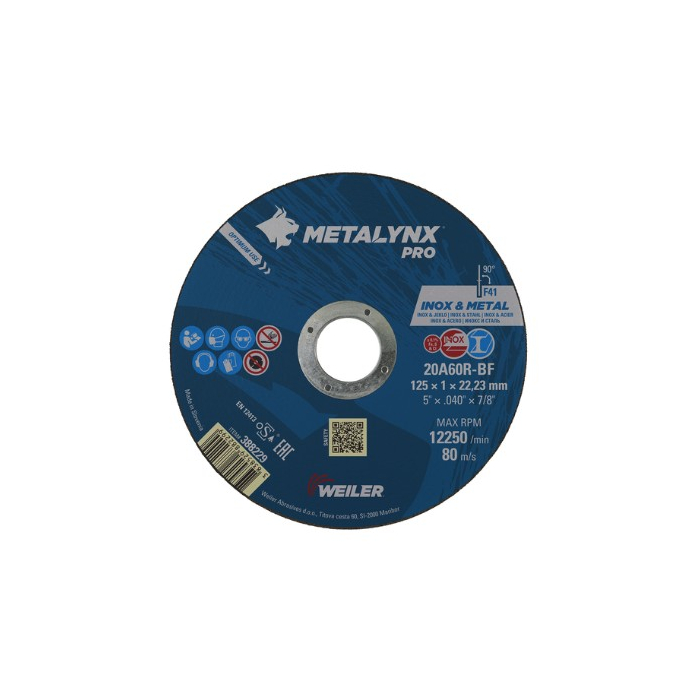 WEILER ploča rezna za inox 125x1x22 je visokokvalitetna rezna ploča namijenjena za precizno i čisto rezanje inoxa i drugih nerđajućih čelika. Ultra tanka izvedba od 1,0 mm omogućava brze rezove uz minimalno zagrijavanje materijala i gotovo bez neravnina. Odlikuje se stabilnim radom i dugim vijekom trajanja. Pogodna je za profesionalnu i hobi upotrebu na ugaonim brusilicama standardnog prihvata 22 mm.